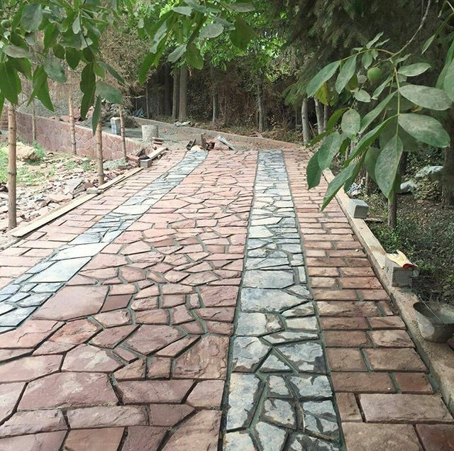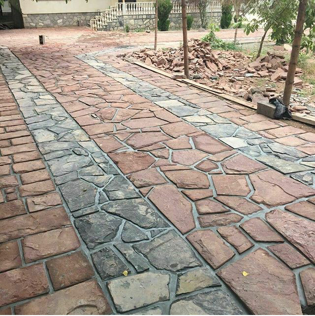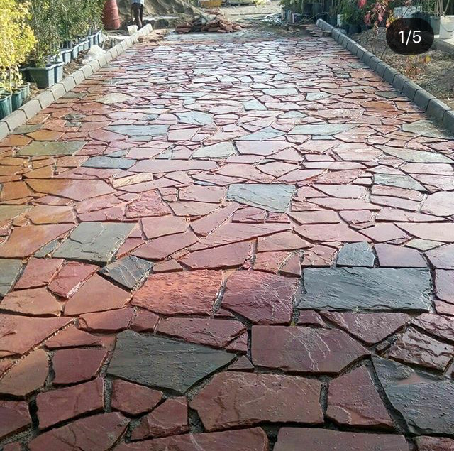 На мощение идеально подойдет красный камень пластушка толщиной от 3 см